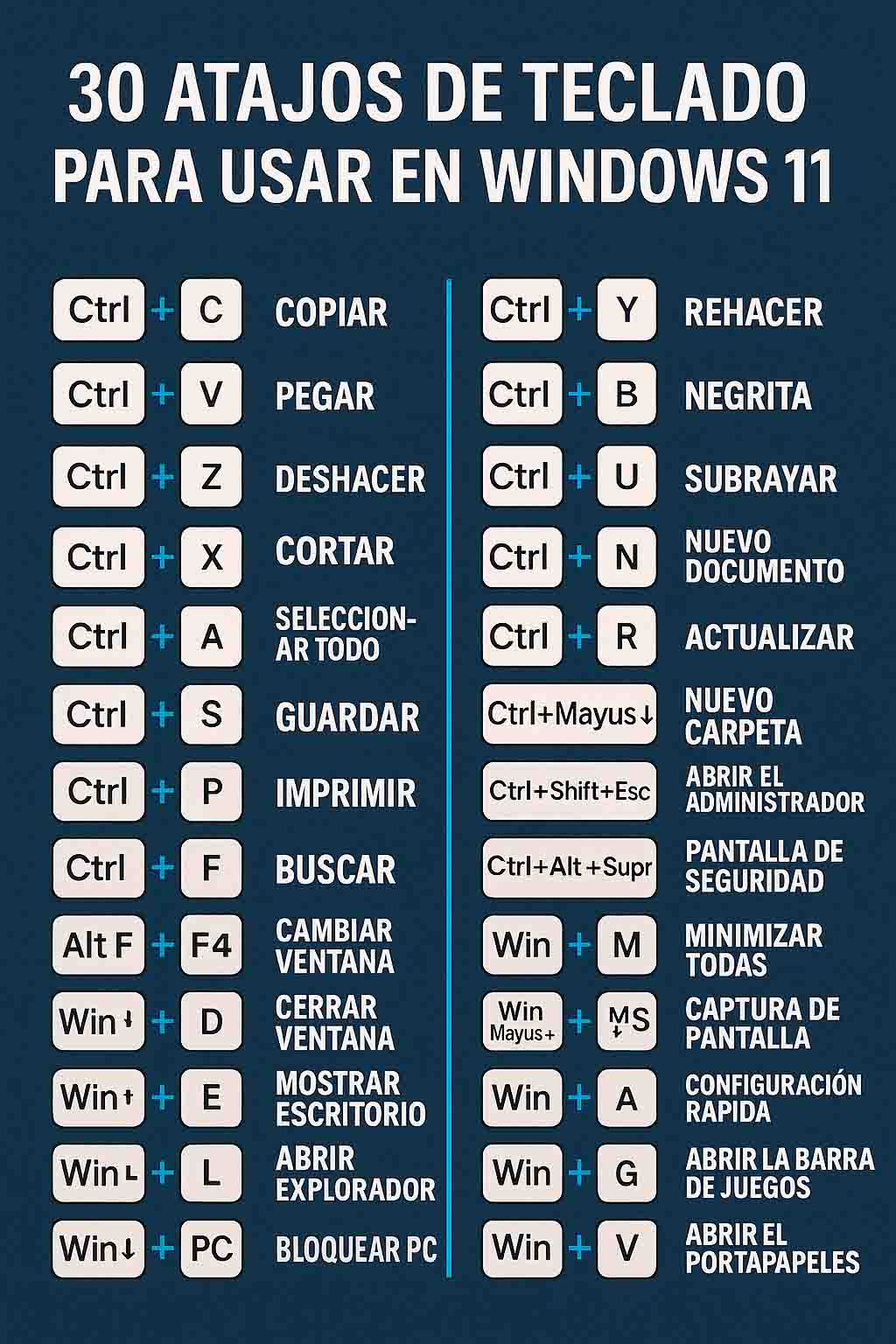 – **Win + V**: Historial del portapapeles (permite pegar cosas que copiaste antes, no solo lo último).